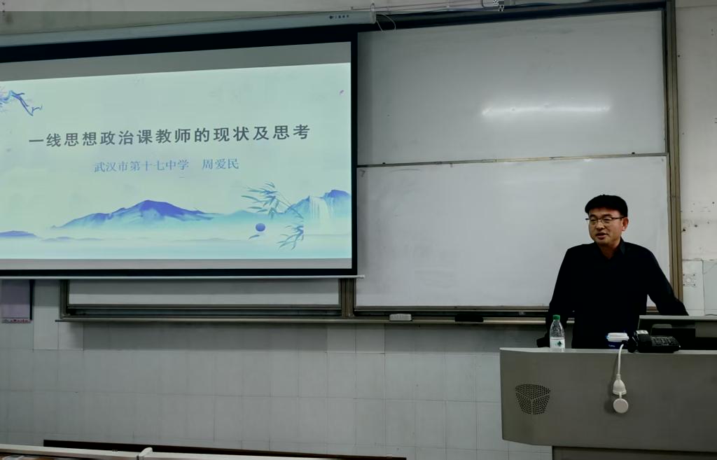(通訊員/馮瑗、毛心甜)9月24日,為助力2023級思想政治教育(師範類)本科生提前了解中學思政教學實際,永利特邀請武漢第十七中資深教師周愛民,開展以“一線思想政治課教師的現狀及思考”為主題的專題講座。本次講座由胡銀銀老師主持,2023級全體思政教育專業學生到場聆聽。